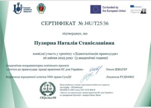 Участь в тренінгу «ДІДЖИТАЛІЗАЦІЯ ПРАВОСУДДЯ»