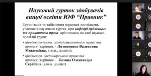 На початку місяця відбулося засідання наукового гуртка «ПРАВНИК» наукових напрямків кафедри публічного та приватного права з метою ознайомити про поточні зміни, а також залучити до роботи наукових напрямків здобувачів першого курсу та мотивувати і надати поради для плідної роботи.